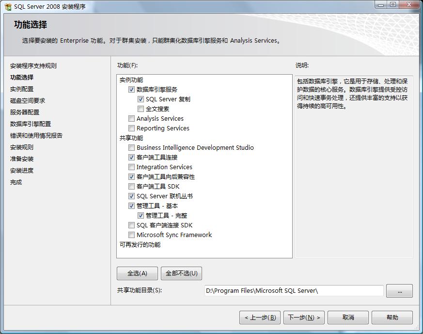 1. 需要.Net Framework 3.5,若在Vista或更高的OS上需要3.5 SP1的支持(在SQL2008安装的前会自动更新安装)