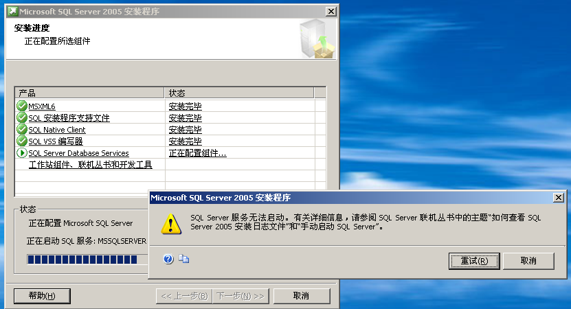 6、安装完成之后,去任务管理器找到sqlservr.exe进程,把它结束掉(其实安装到这里安装程序会提示你的,说还有什么进程在运行,应该关掉之类的,你去把安装程序提醒的进程结束掉就行了,我记得我是关掉了两个进程),把备份的sqlservr.exe文件还原回去,也就是替换回去(否则SP4安装程序以为你已经应用过SP4),然后立即打上SP4补丁(即安装已经下载好的SP4更新程序)。(在此之前不要运行SQL任何软件)