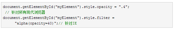 上面的代码可以使用行内循环或者其他动态函数递增修改透明度的值。当然,你必须先通过特征检测来决定使用哪一行代码。
