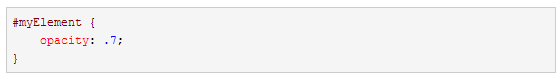 上述语法将设置一个元素为70%不透明(或30%透明)。设置opacity:1将使元素不透明,而设置opacity:0将使得元素完全不可见。你 只要记住“opacity”等同于“不透明”就很容易记住了,opacity值越小就越接近透明。
